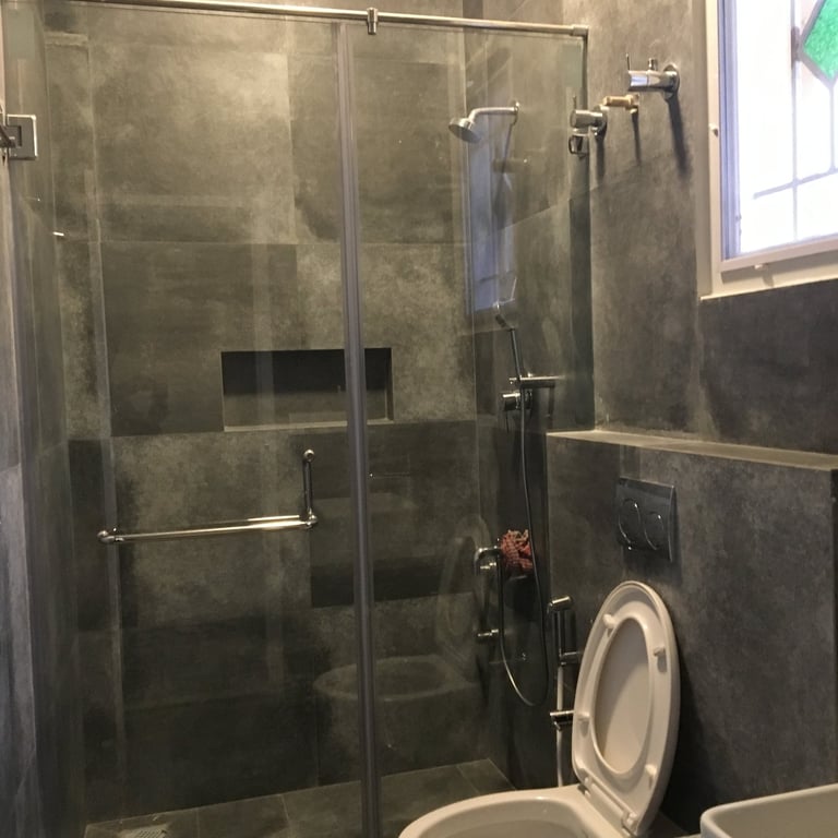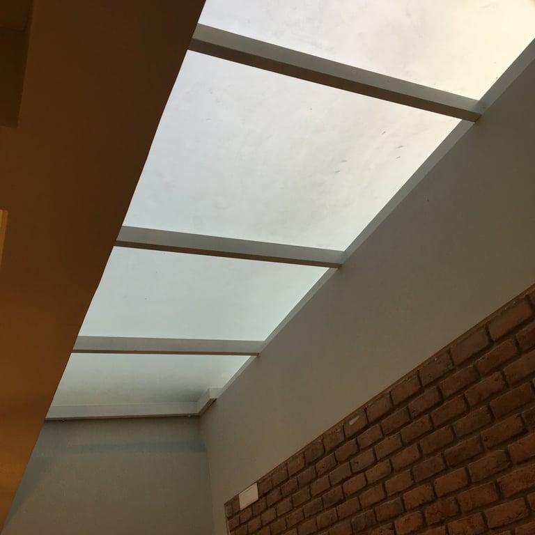This residence was designed to suit the family of three members and their pet ludo. It is situated in ferns meadows in Bilishivale, near Byrathi, Bangalore. The site area is 40’ x 70’, East - facing site & built-up area is about 8,000 sft. The residence has parking in the basement, living, dining, kitchen and four bedrooms and a hobby room in the upper floors. The house has a skylight at one end of the staircase areas.