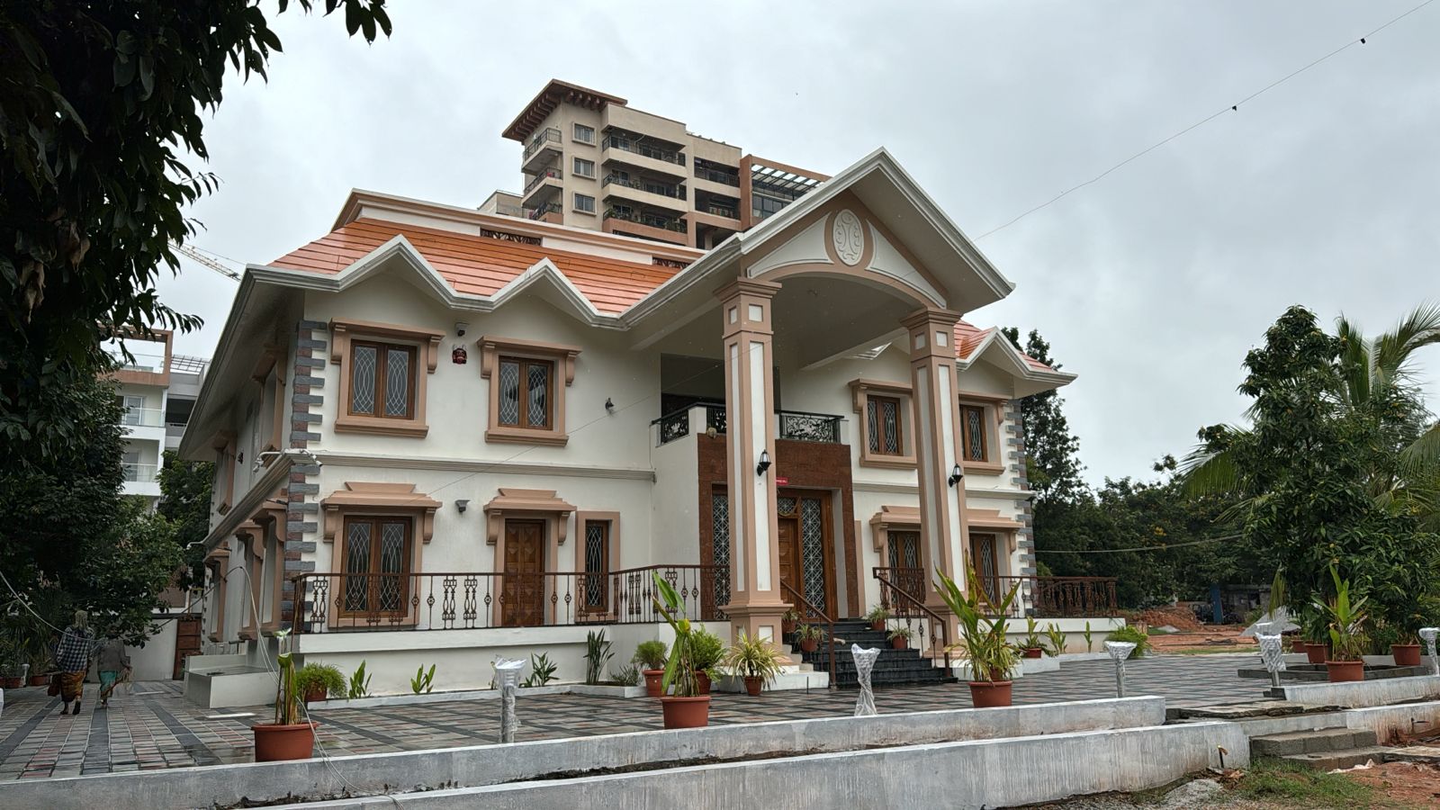 This residence is situated on a Two Acre plot for Dr’s family at Thanisandra Main Road, next to Vajram Essenza & Shobha city. The site is approached from all the side roads and main road. The area considered for residence is 50’ x 50’ of Two Acre Plot. The Main door facing north is accessible from both north and the south side gate.
